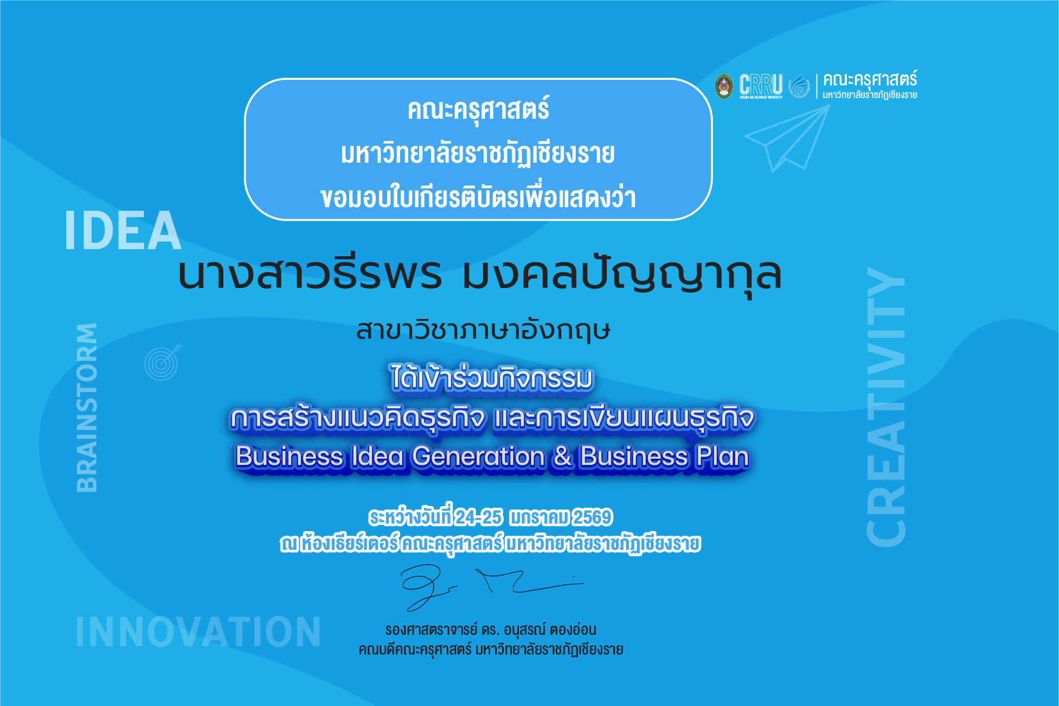 | 44 | นางสาวธีรพร มงคลปัญญากุล | สาขาวิชาภาษาอังกฤษ | ดาวน์โหลดเกียรติบัตร | |