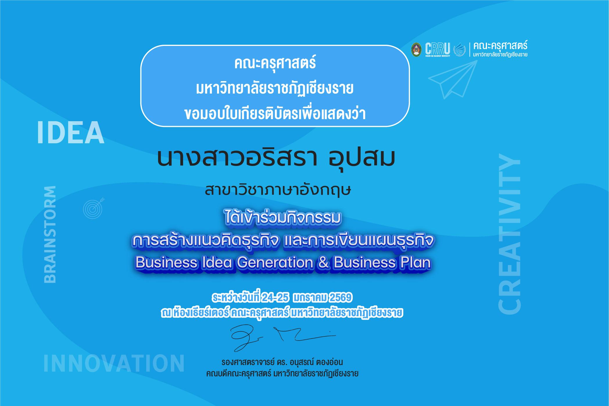 | 48 | นางสาวอริสรา อุปสม | สาขาวิชาภาษาอังกฤษ | ดาวน์โหลดเกียรติบัตร | |