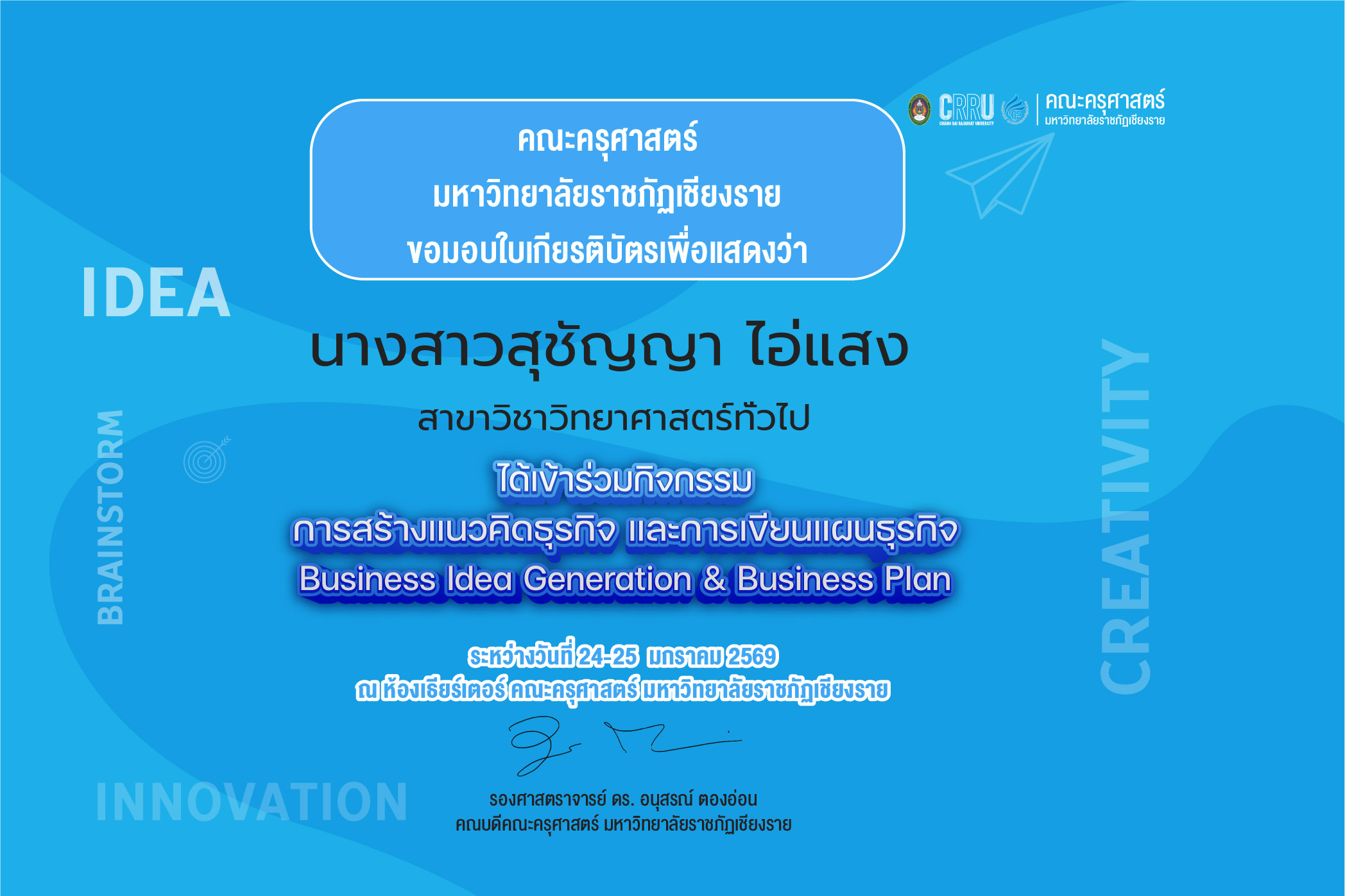 | 54 | นางสาวสุชัญญา ไอ่แสง | สาขาวิชาวิทยาศาสตร์ทั่วไป | ดาวน์โหลดเกียรติบัตร | |