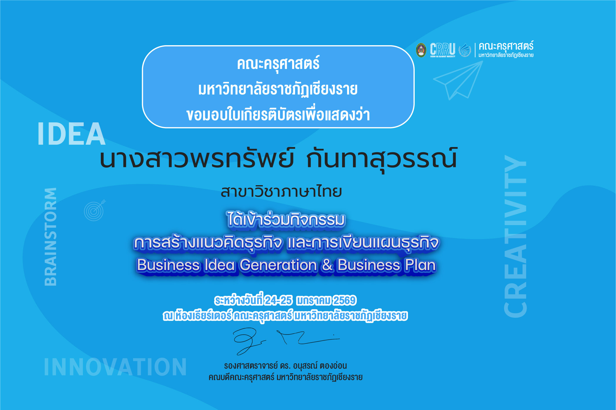 | 59 | นางสาวพรทรัพย์ กันทาสุวรรณ์ | สาขาวิชาภาษาไทย | ดาวน์โหลดเกียรติบัตร | |
