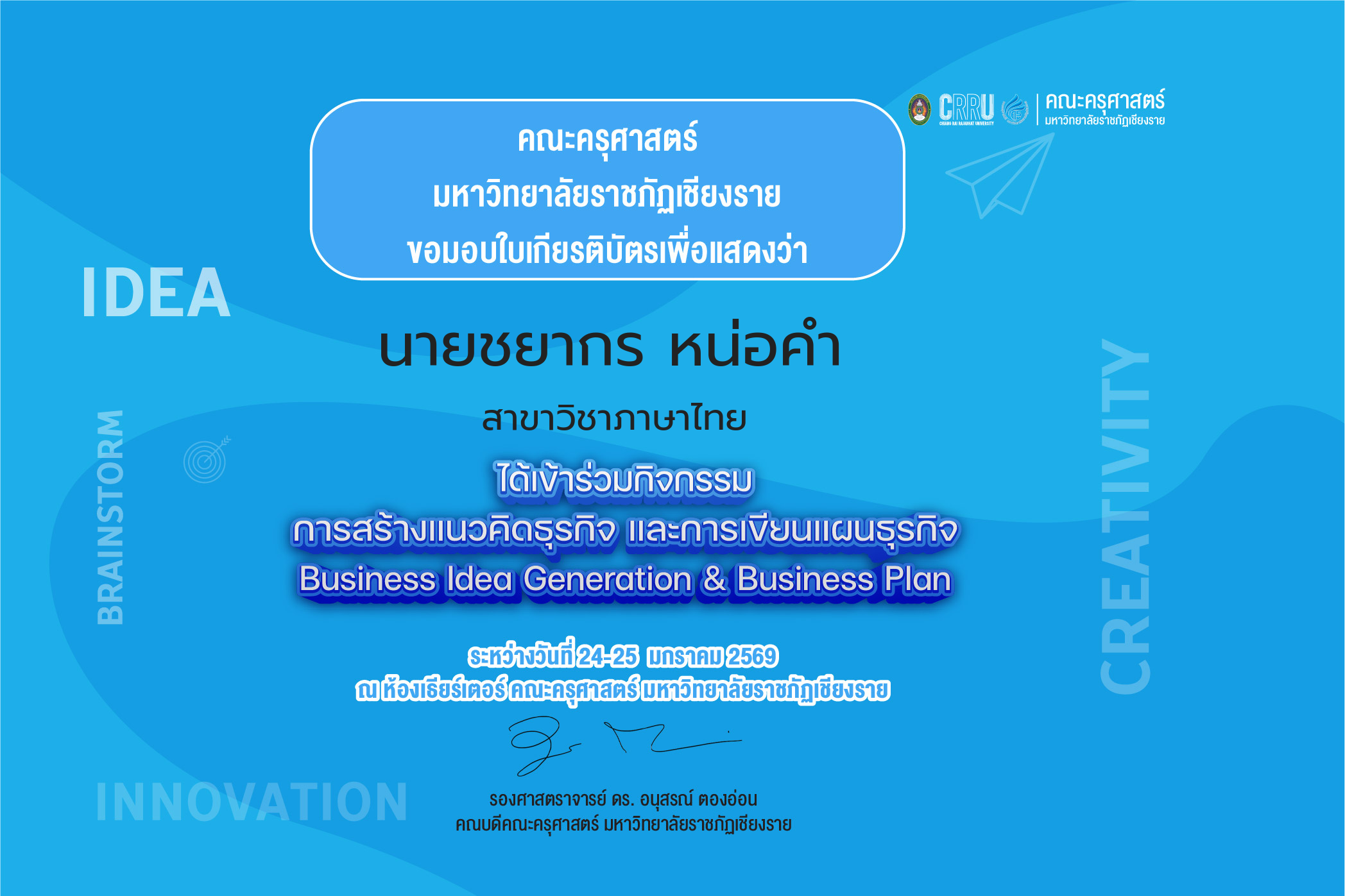 | 60 | นายชยากร หน่อคํา | สาขาวิชาภาษาไทย | ดาวน์โหลดเกียรติบัตร |