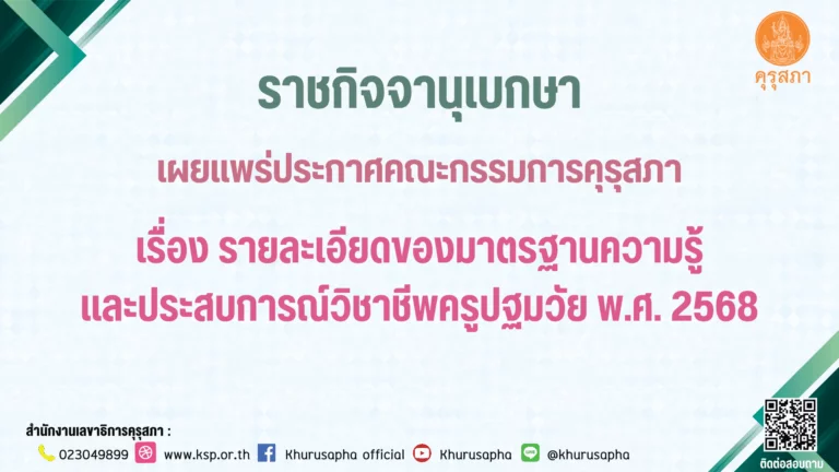 ราชกิจจานุเบกษาเผยแพร่ ประกาศคณะกรรมการคุรุสภา เรื่อง รายละเอียดของมาตรฐานความรู้และประสบการณ์วิชาชีพครูปฐมวัย พ.ศ. 2568 มีผลใช้บังคับตั้งแต่วันที่ 28 ตุลาคม 2568