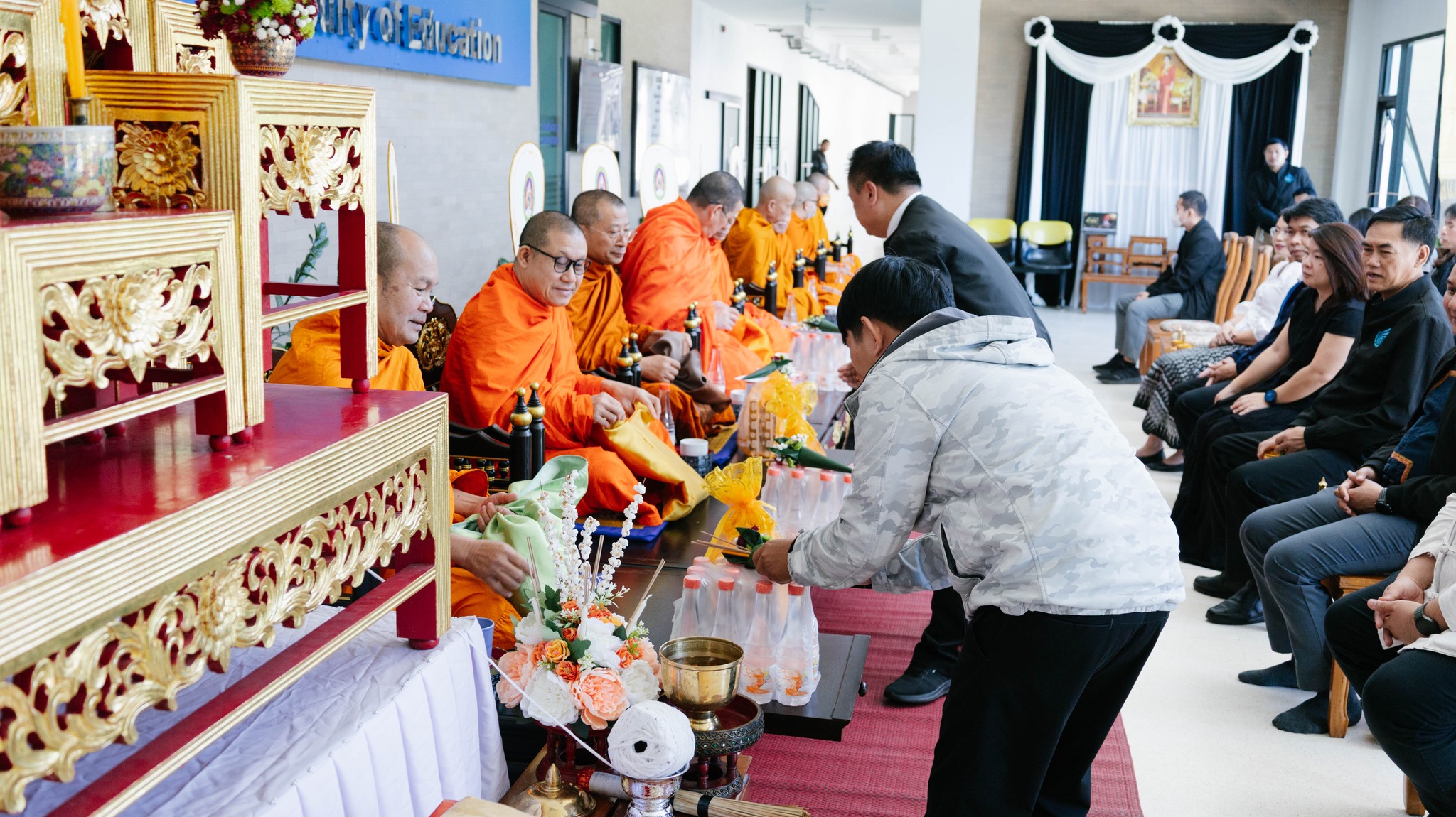 ????วันที่ 21 พฤศจิกายน 2568 คณะครุศาสตร์ จัดพิธีทำบุญเพื่อเสริมความเป็นสิริมงคล และสร้างขวัญกำลังใจให้แก่บุคลากรในคณะ โดยมี รองศาสตราจารย์ ดร.อนุสรณ์ ตองอ่อน เป็นประธานในพิธี ภายในงานมีผู้บริหาร คณาจารย์ เจ้าหน้าที่ และนักศึกษา เข้าร่วมอย่างพร้อมเพรียง พิธีทำบุญในครั้งนี้ มีวัตถุประสงค์เพื่อเป็นสิริมงคลแก่หน่วยงาน รวมถึงการปฏิบัติงานของบุคลากรทุกส่วน ตลอดจนเป็นการเสริมสร้างพลังใจในการร่วมกันพัฒนาคณะครุศาสตร์ให้เป็นแหล่งผลิตครูมืออาชีพ ที่มุ่งเน้นคุณภาพและมาตรฐานวิชาชีพครูอย่างต่อเนื่อง