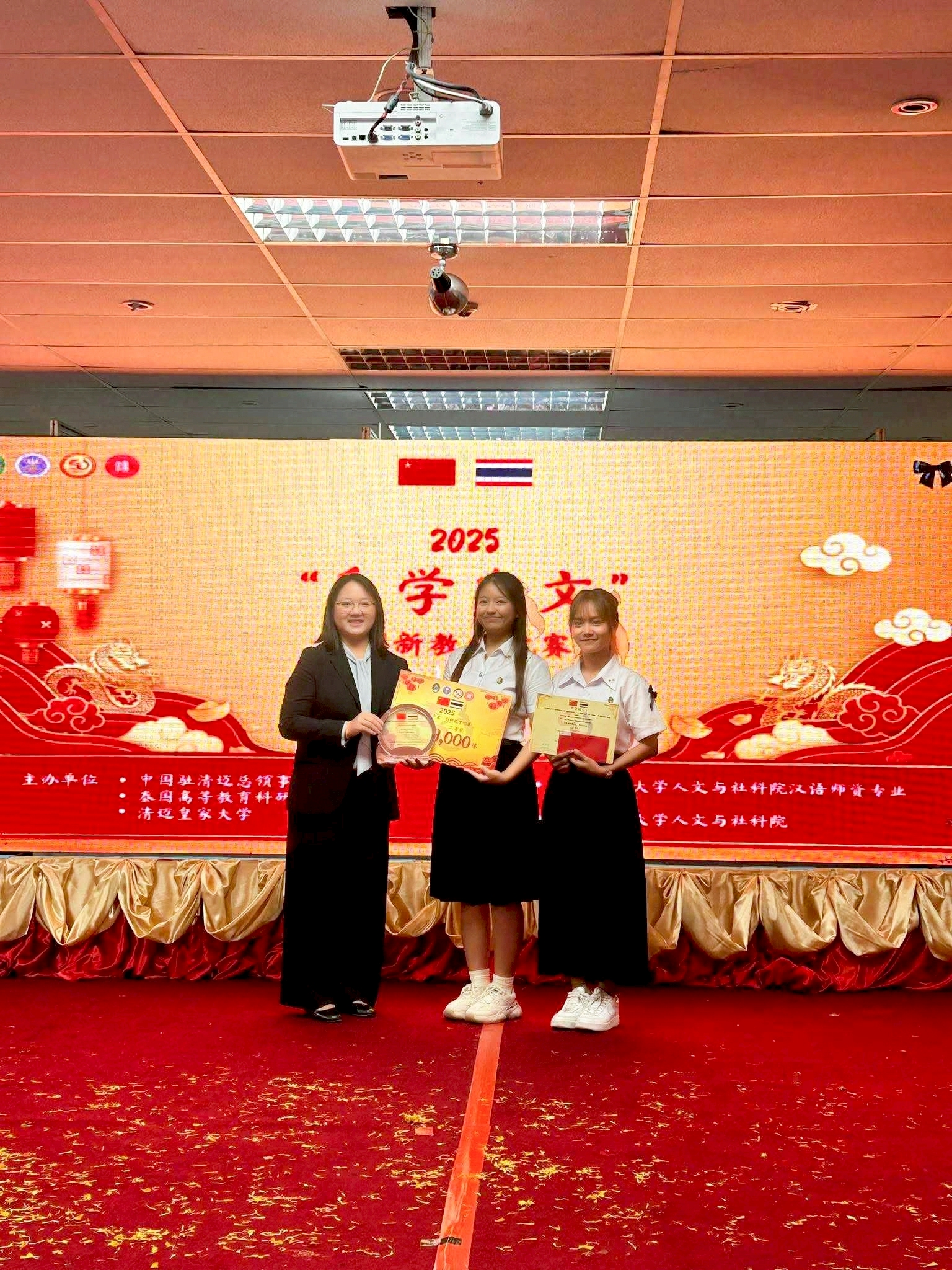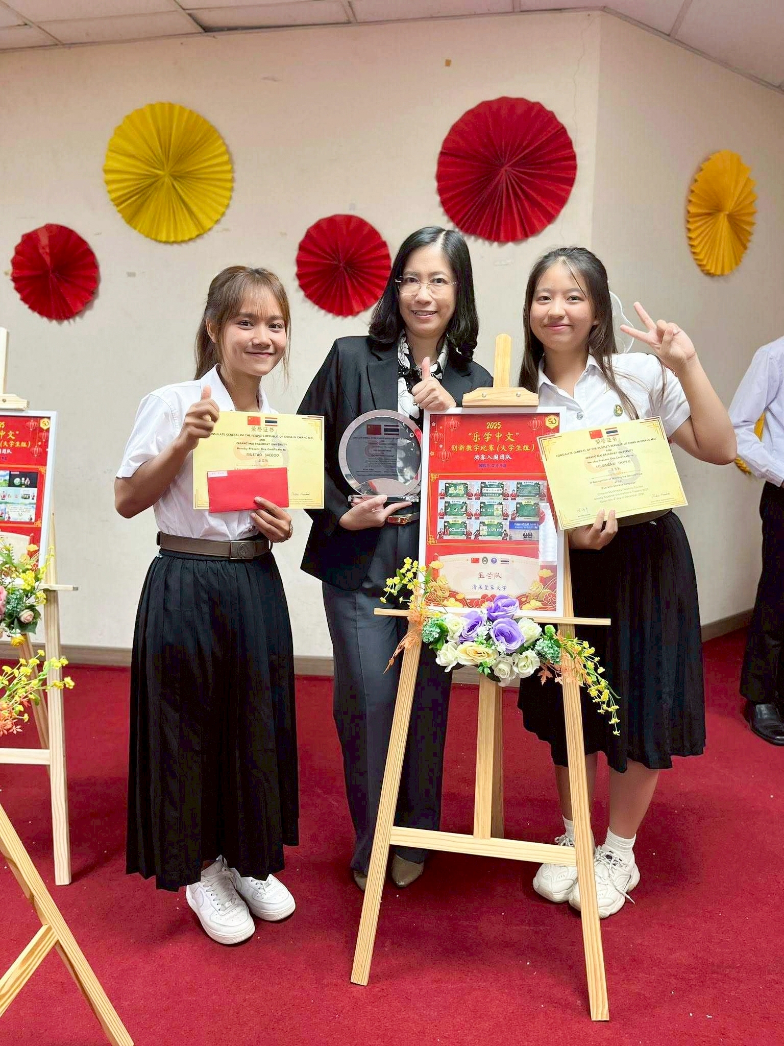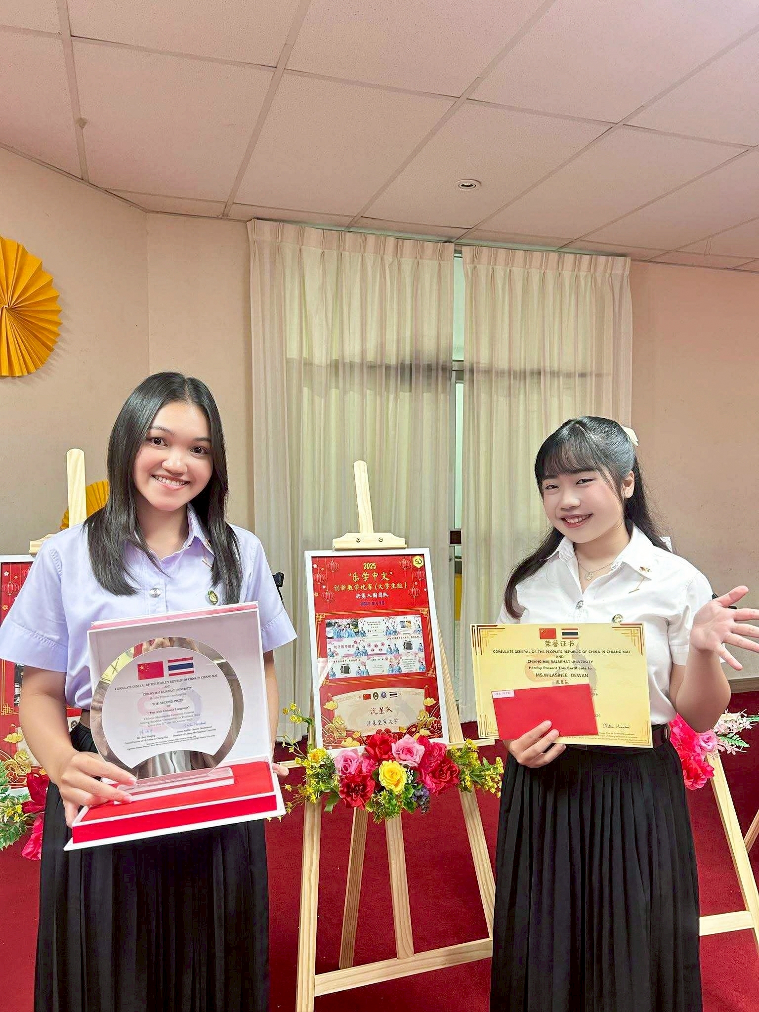 ????คณะครุศาสตร์ ขอแสดงความยินดีกับนักศึกษาชั้นปีที่ 3 สาขาวิชาการสอนภาษาจีน ที่ได้รับรางวัลจากการประกวดคลิปสื่อการสอนภาษาจีนสำหรับนักเรียนระดับชั้นมัธยมศึกษา ระดับมหาวิทยาลัยราชภัฏทั่วประเทศ ในหัวข้อ “สนุกกับภาษาจีน” ชิงโล่เกียรติยศและเงินรางวัลจากสถานกงสุลใหญ่แห่งสาธารณรัฐประชาชนจีน ประจำเชียงใหม่ ในวันที่ 4 ธันวาคม 2568ณ มหาวิทยาลัยราชภัฏเชียงใหม่ ศูนย์เวียงบัว โดยสาขาวิชาภาษาจีน คณะมนุษยศาสตร์และสังคมศาสตร์
