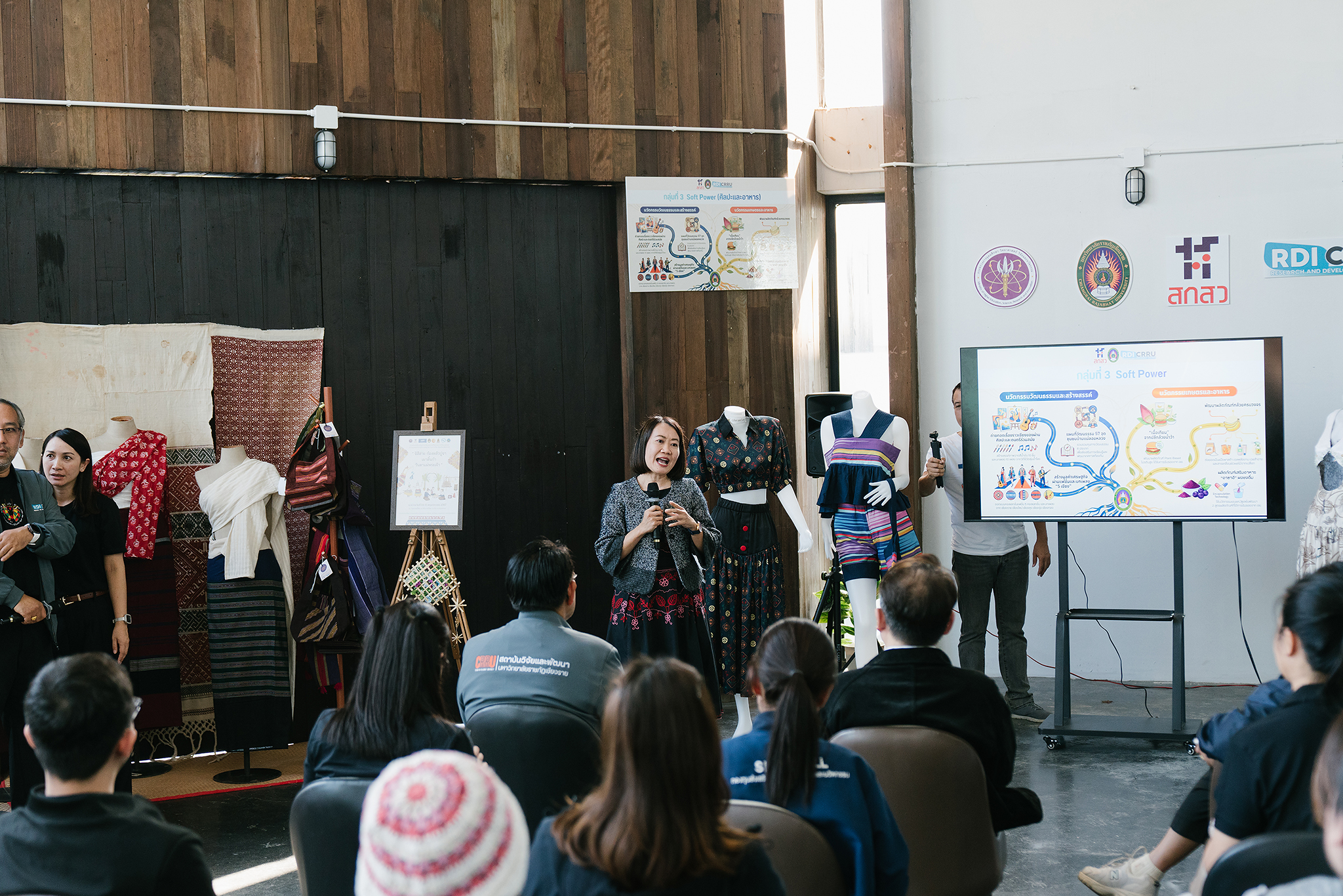 ???? กลุ่มที่ 3 “Soft Power (ศิลปะและอาหาร) ร้อยเรียงศิลป์กินวัฒนธรรมหนุนนำ Soft Power” นำเสนอผลงานวิจัยที่เชื่อมโยงทุนทางวัฒนธรรม ศิลปะ และอาหาร เข้ากับการขับเคลื่อน Soft Power ของจังหวัดเชียงราย ครอบคลุมงานวิจัยด้านการพัฒนาอาหารมูลค่าสูงจากพืชท้องถิ่น งานวิจัยด้านศิลปะการแสดง ดนตรี ผ้า และภูมิปัญญาชุมชน ตลอดจนการสร้างสรรค์ผลงานศิลปะร่วมสมัย เพื่อส่งเสริมการท่องเที่ยวและอัตลักษณ์ท้องถิ่น สะท้อนศักยภาพของงานวิจัยในการสร้างคุณค่าเชิงเศรษฐกิจและวัฒนธรรมอย่างยั่งยืน ผลงานวิจัยที่นำเสนอดังนี้