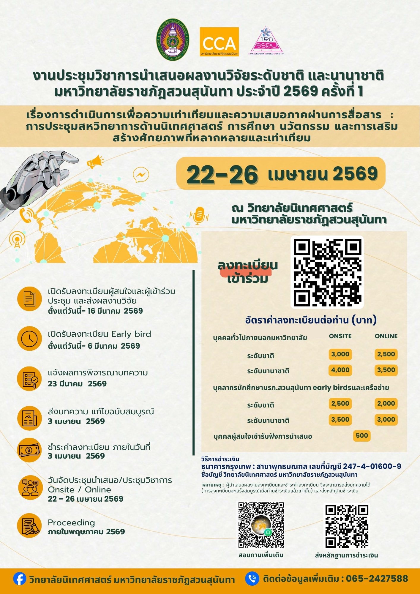 นิเทศศาสตร์ สวนสุนันทา ขอเชิญชวนส่งผลงานและเข้าร่วมงานประชุมวิชาการระดับชาติและนานาชาติ ครั้งที่ 1 "The 1 st National and International Conference 2026
