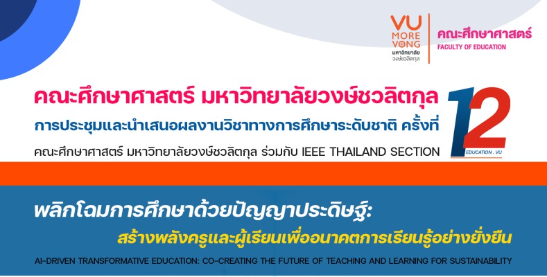 คณะศึกษาศาสตร์ มหาวิทยาลัยวงษ์ชวลิตกุล จัดการประชุมและนำเสนอผลงานวิชาการทางการศึกษาระดับชาติ ครั้งที่ 12 "การพลิกโฉมการศึกษาด้วยปัญญาประดิษฐ์ : สร้างพลังครูและผู้เรียนเพื่ออนาคตการเรียนรู้อย่างยั่ยืน" วันที่ 30 พฤษภาคม 2569